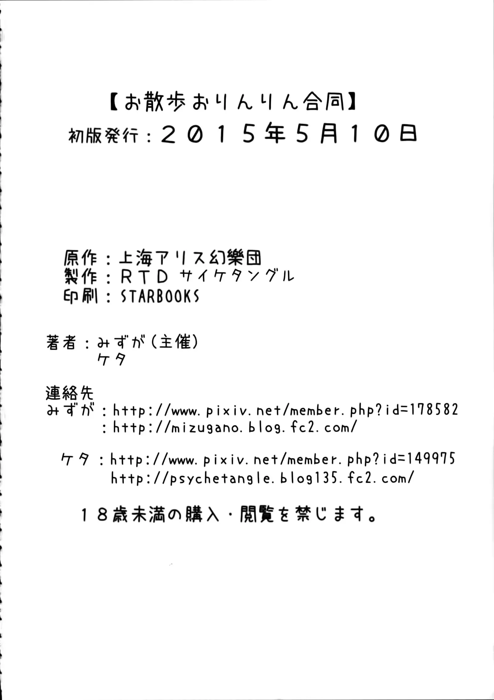 (Reitaisai 12) [Psychetangle, RTD (Keta, Mizuga)] Osanpo Orinrin Goudou | 遛阿燐合作本 (Touhou Project) [Chinese] [手机个人汉化]