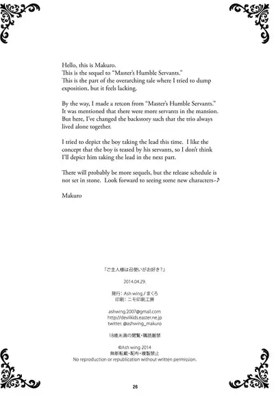 (COMIC1☆8) [Ash Wing (Makuro)] Goshujin-sama wa Meshitukai ga Osuki? | Does Master Like His Servants? [English] [Translatione Ex Machina]