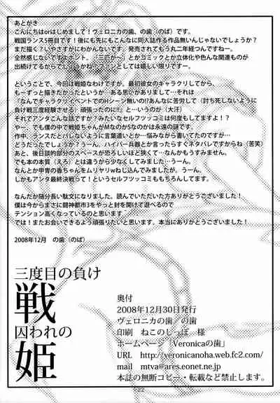 Sandome no Makeikusa Toraware no Hime Pics (C75) [ヴェロニカの歯 (の歯)] 三度目の負け戦囚われの姫 (戦国ランス)